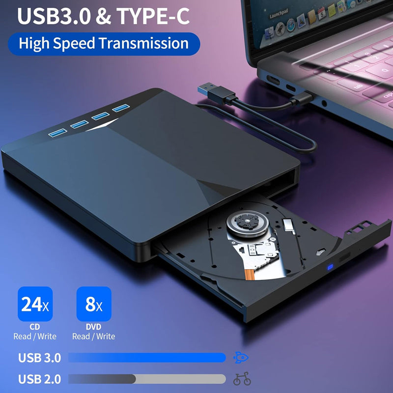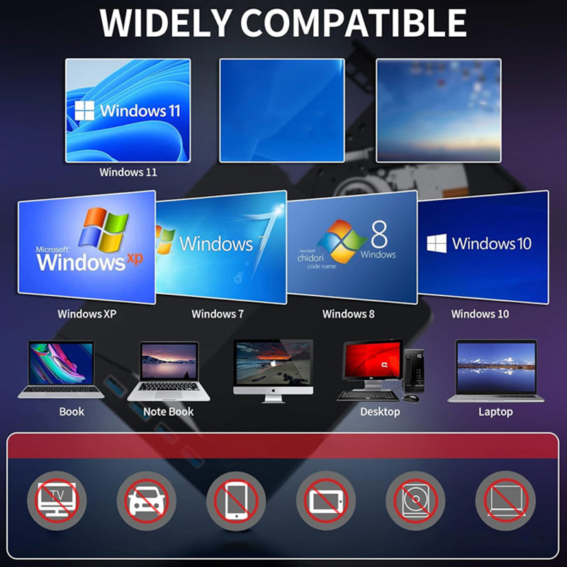 7-IN-1 MULTIFUNCTIONAL HUB - Go beyond a simple disc drive. This device expands your connectivity with four USB ports, a card reader, and a TF card reader, simplifying your workspace and letting you connect everything at once.