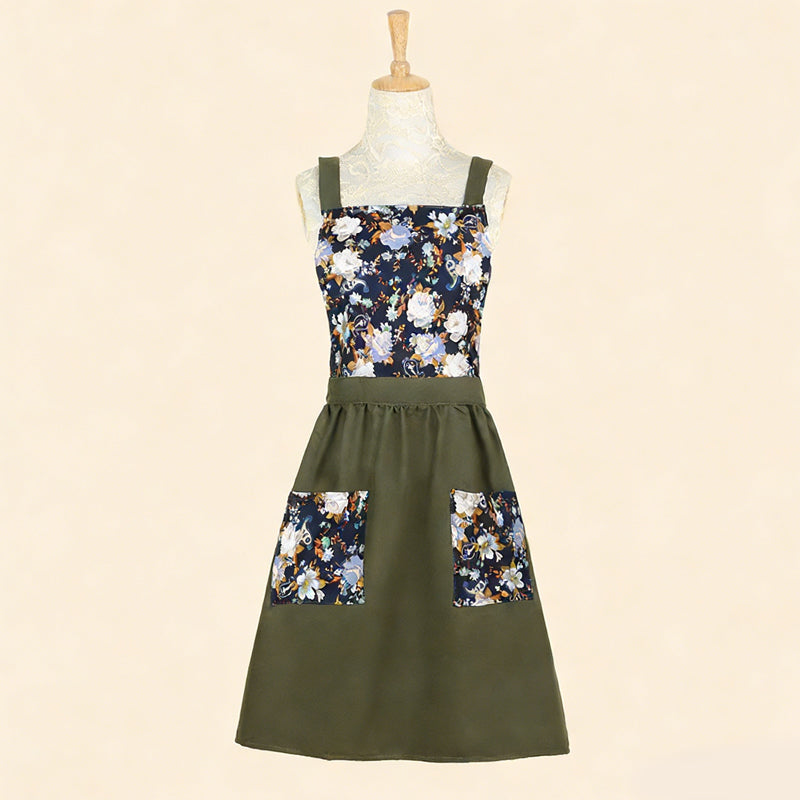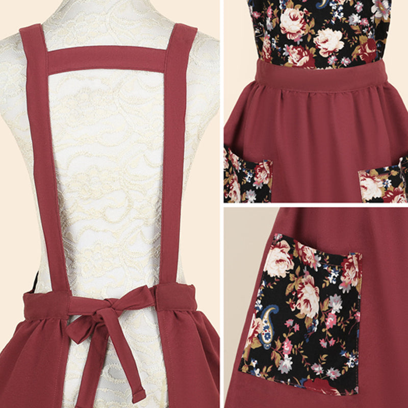 Floral Cotton Kitchen Apron with Pockets