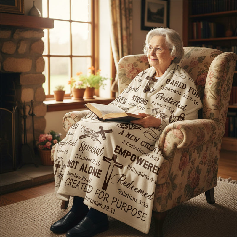 INSPIRATIONAL CHRISTIAN DESIGN - Surround yourself with faith and positivity. This blanket features uplifting scriptures and affirmations, serving as a comforting daily reminder of your beliefs and bringing spiritual warmth and encouragement to your home.