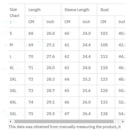 Tallas Disponibles: S/M/L/XL/2XL/3XL/4XL/5XL