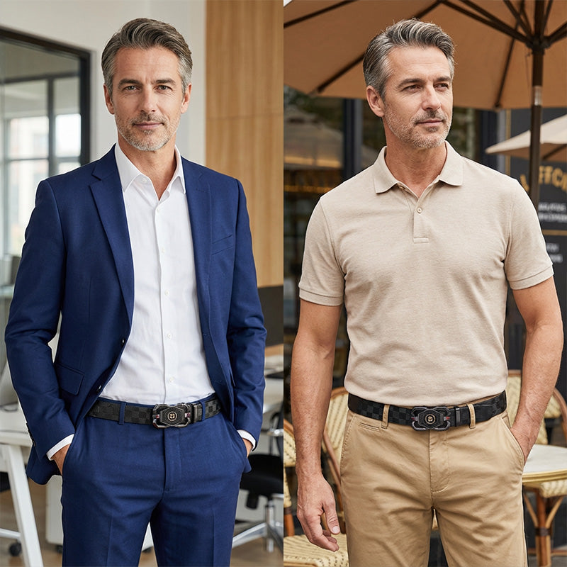 EFFORTLESS AUTOMATIC BUCKLE - Forget fumbling with ill-fitting holes. Our advanced automatic buckle glides smoothly and locks securely for a precise, comfortable fit every time, ensuring you always look sharp without needing constant readjustments.