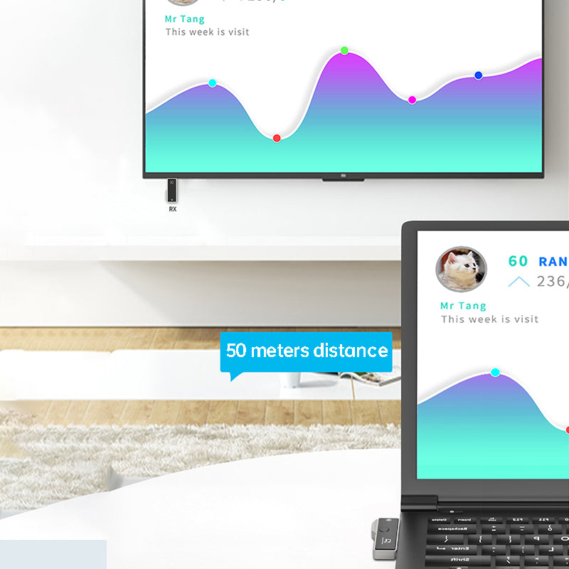 EXTENDED RANGE - With a long-distance range of up to 50 meters, this adapter set offers flexibility in setting up your wireless display connection. Move around the room while maintaining a stable and reliable connection.